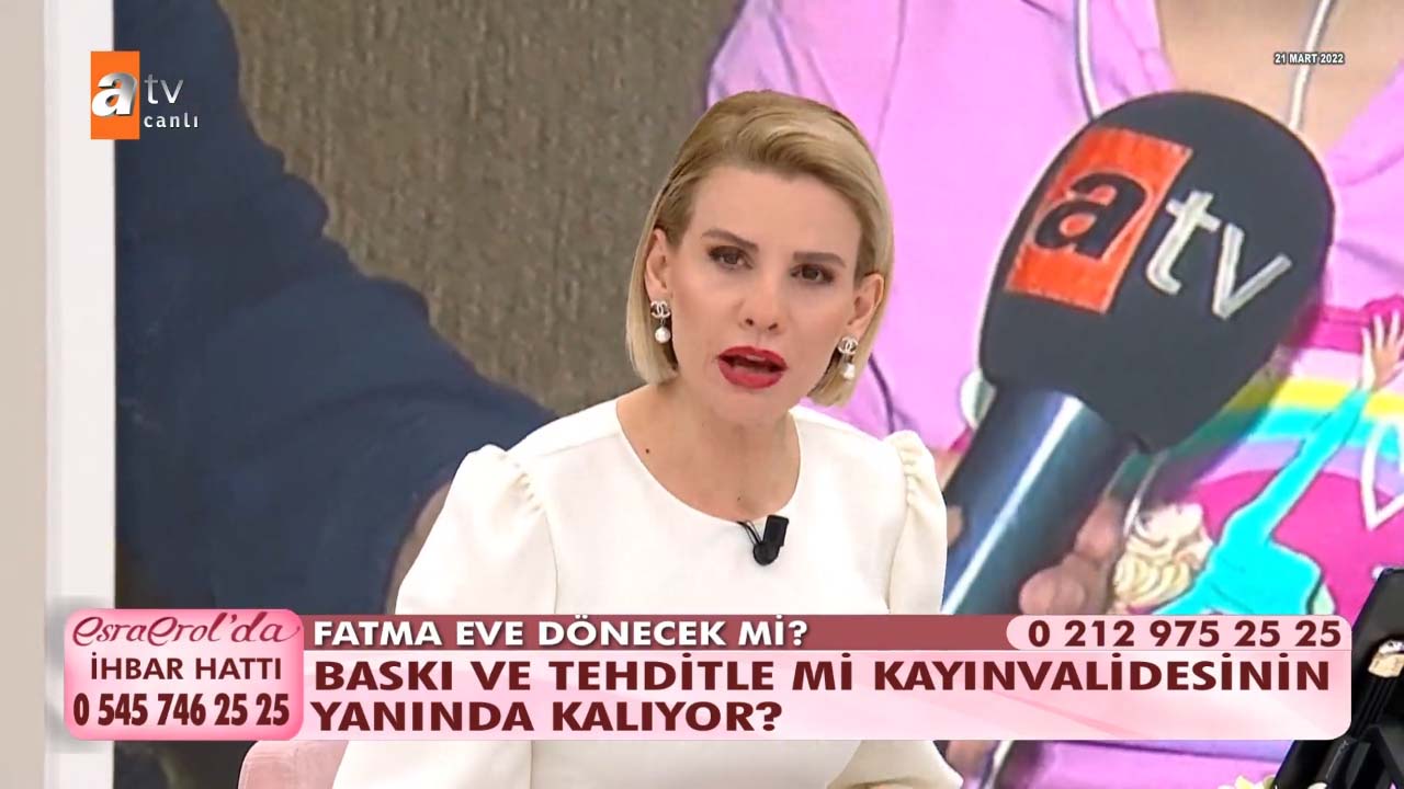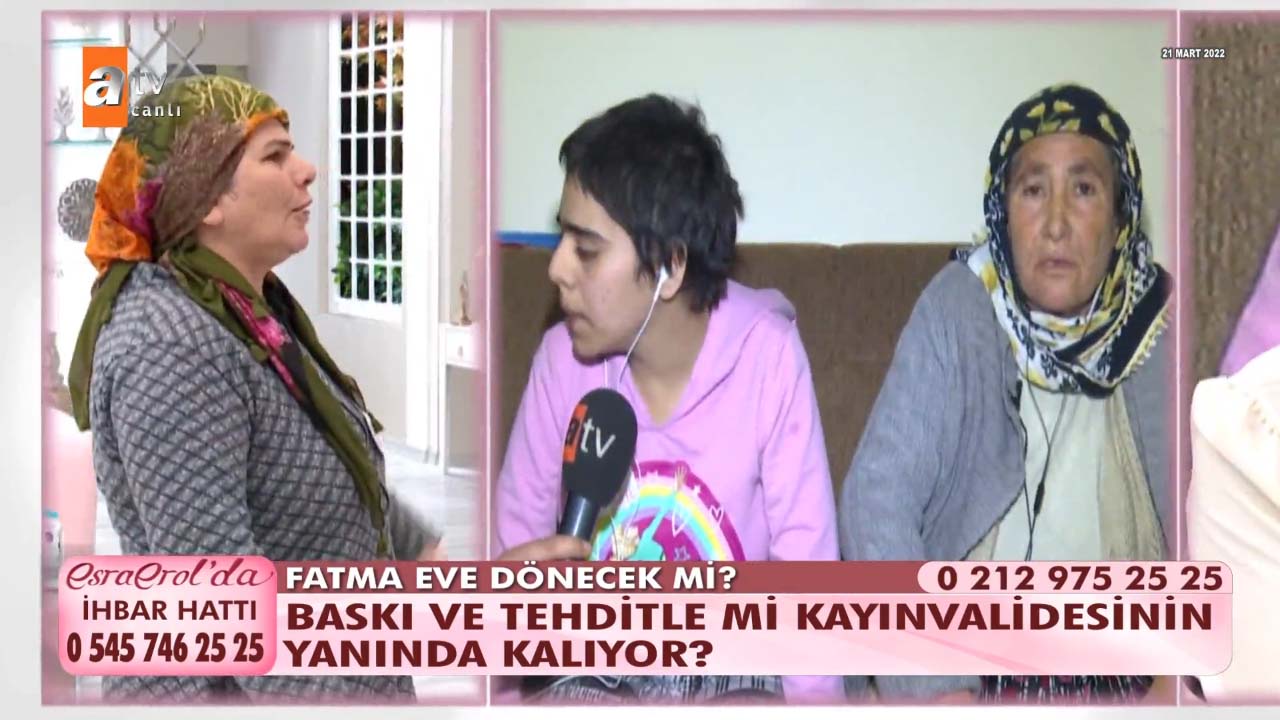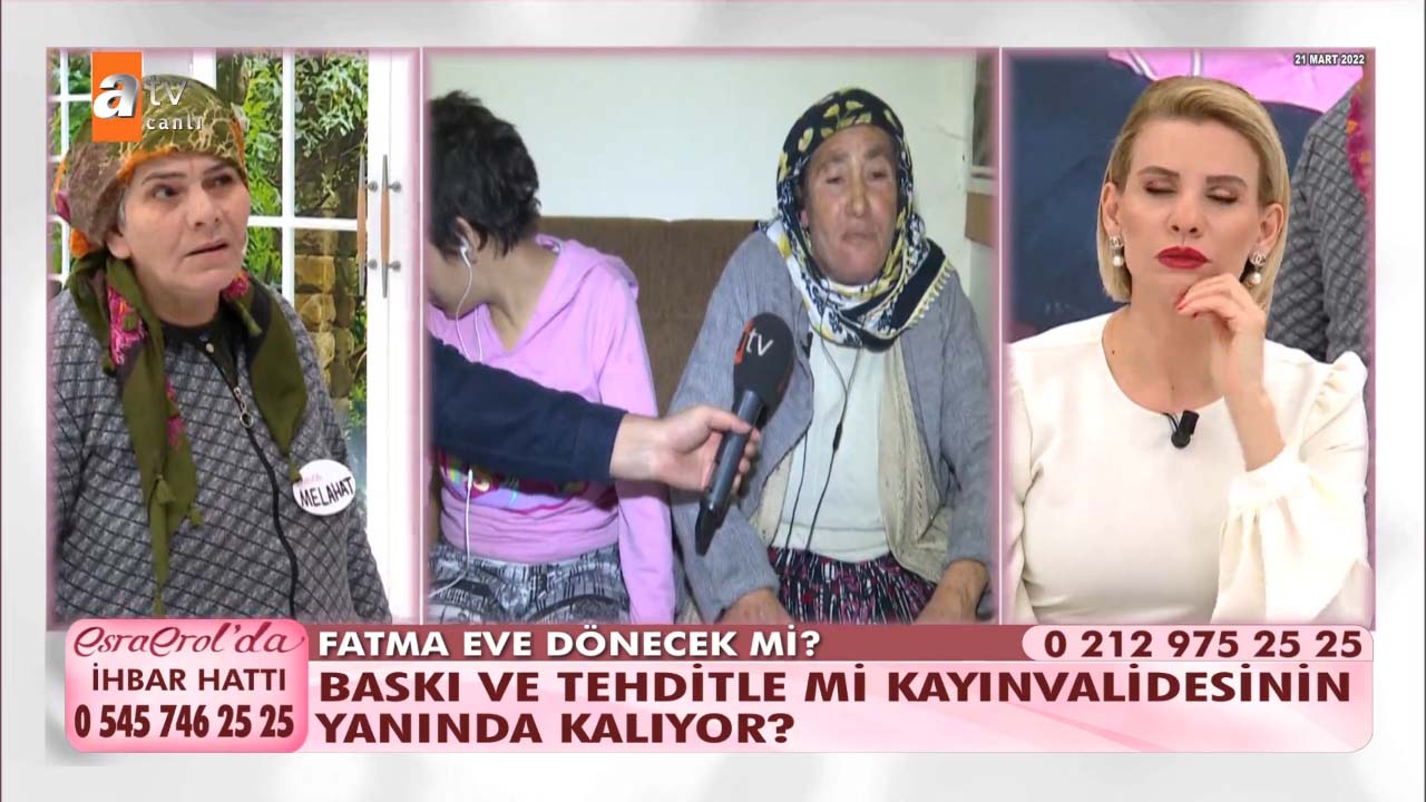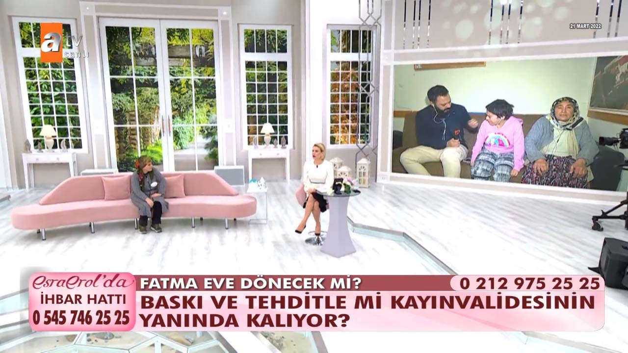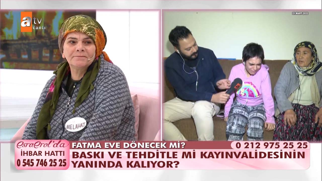 Atv ekranlarında izlenme rekorları kıran Esra Erol'da programına 19 yaşındaki zihinsel engelli Fatma damga vurdu. Türkiye'nin yakından takip ettiği Fatma ve anne Melahat Oruç arasındaki diyalog herkesi şaşırttı. Esra Erol'da bugün yaşanan son gelişmelerde ise kızına dön çağrısı yapan Melahat Oruç, kızı Fatma'ya dön çağrısı yaptı. Fatma'nın sözleri ise Esra Erol'da canlı yayınına damga vurdu. İşte 22 Mart Salı Esra Erol'da yaşanan son gelişmeler...