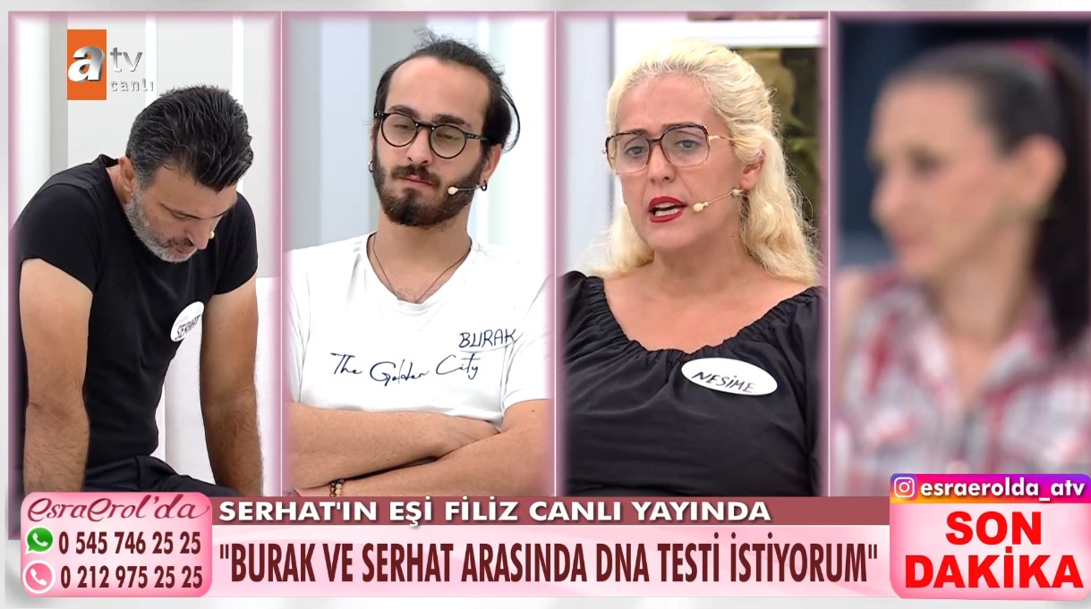 Bunun ardından bugün canlı yayında Burak, Nesime, Serhat Kılıç ve eşi Filiz bir araya geldi. Stüdyoda Filiz'in "DNA testi istiyorum, çünkü güvenmiyorum Nesime Hanıma" demesi ile ortam gerildi ve ardından gelen ihbar ortalığı karıştırdı.