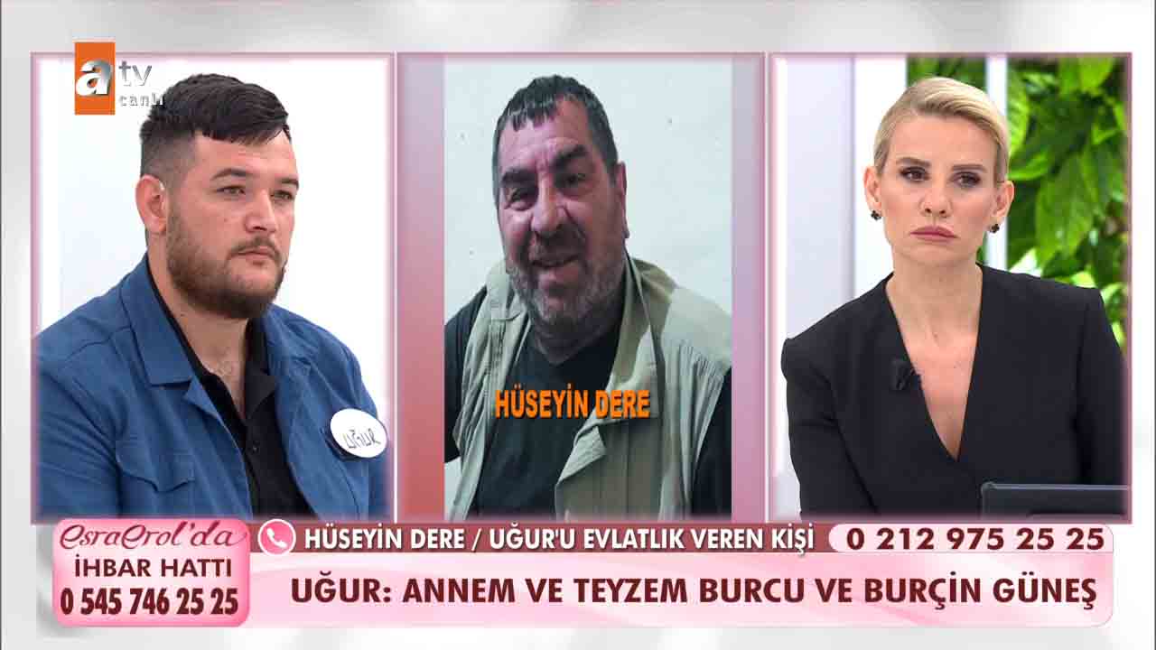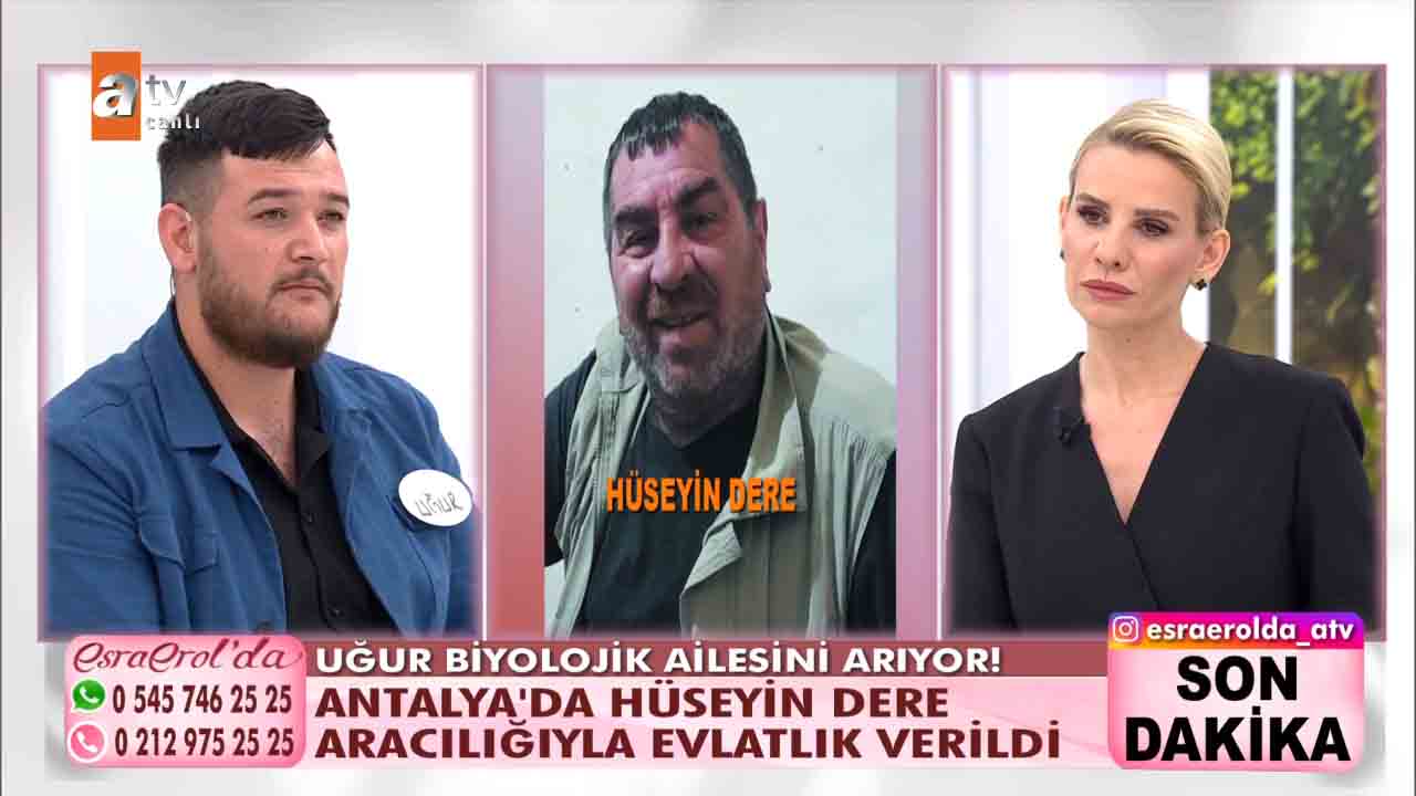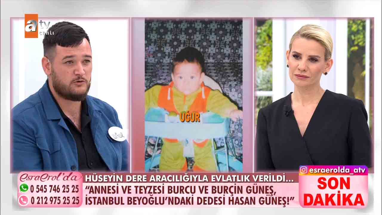 Hayat hikayesini anlatan Uğur şöyle konuştu: "Akrabalar tarafından evlatlık olduğum söyleniyordu. Ama hiç inanmadım. Hiç hissettirilmedim. Askere gittiğimde psikolojik sorunlar yaşadım. Orada evlatlık olduğumu öğrendim. Şuan 2 çocuk sahibiyim. Annem ve babamı bulmaya geldim. Beni Antalya'da Hüseyin Dere aracılılığıyla 17 günlükken evlatlık vermişler. İyi ki vermişler.