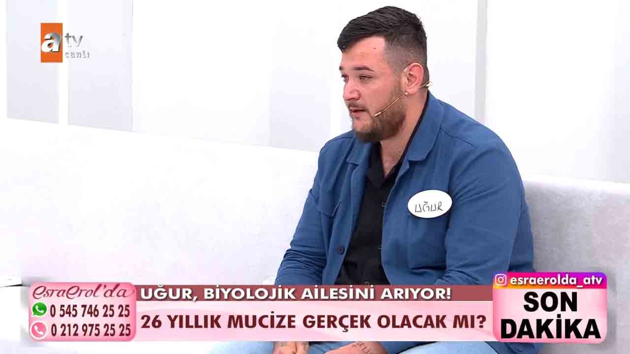 Esra Erol'un bu haftaki programında akıllara durgunluk veren bir olay yaşandı. Evli ve 2 çocuk babası 26 yaşındaki Uğur Yeşilçimen, biyolojik ailesini bulmak için stüdyoya geldi.