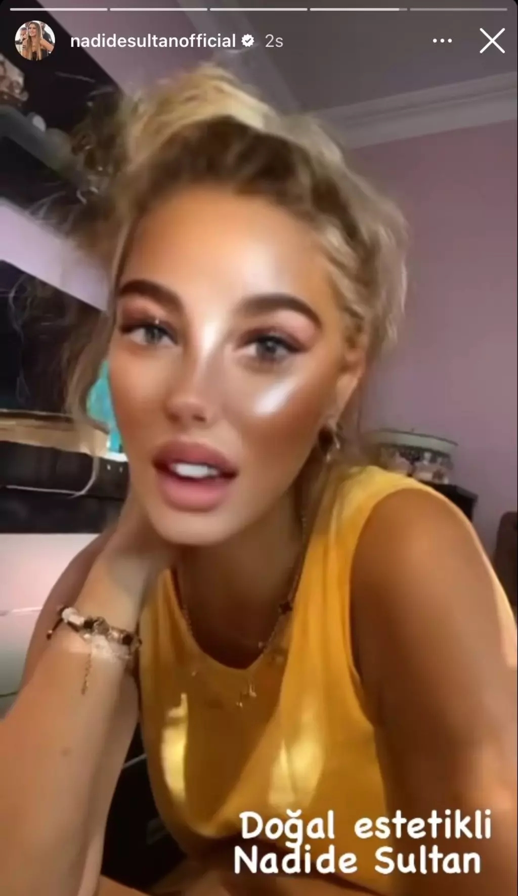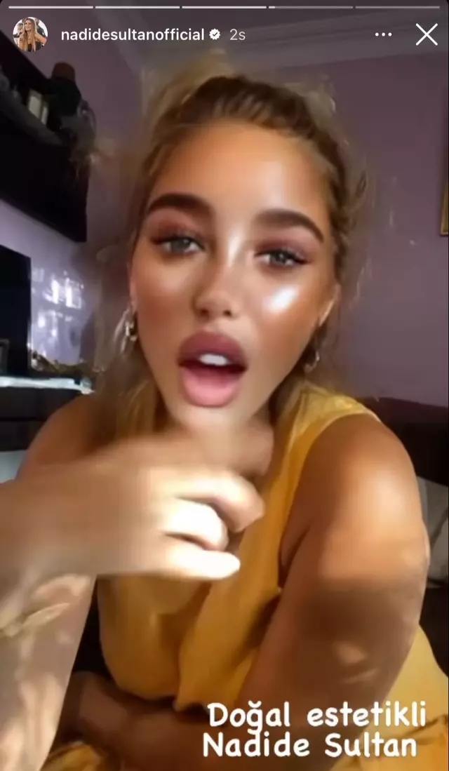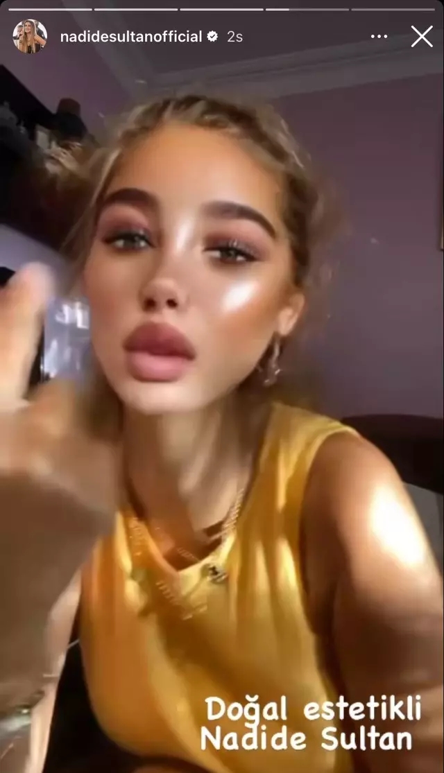 Efekt ile yüzünü değiştirerek botoks ve estetik yaptırmış gibi görünen Nadide Sultan "Doğal estetikli Nadide Sultan" notuyla paylaştı.