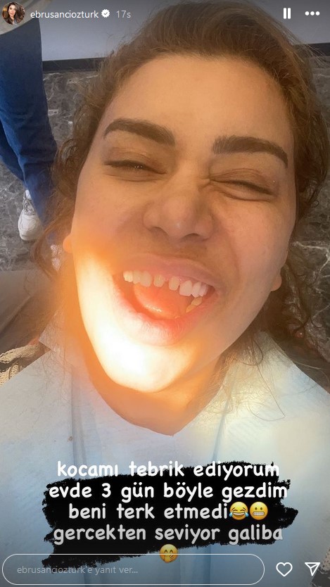 Pendikspor forması giyen Alparslan Öztürk'ün eşi Ebru Şancı, evlendikten sonra modelliği bırakmıştı. Sosyal medyayı aktif kullanan ünlü isim, son olarak diş yaptırırken çekilen bir fotoğrafını yayınladı. Eski mankenin dişçi pozu ve paylaşıma düştüğü not gündem oldu. İşte o paylaşım...