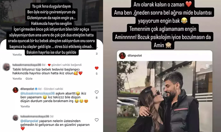 Kara para aklama suçlamasıyla tutuklandıktan sonra tahliye edilen Dilan ve Engin Polat çifti, aldıkları kararla dikkat çekti. Üçüncü çocuğu istediklerini her fırsatta dile getiren Dilan Polat, tüp bebek tedavisine başladıklarını duyurdu. Instagram'dan paylaşım yapan Polat'ın takipçisine verdiği yanıt ise gözlerden kaçmadı.