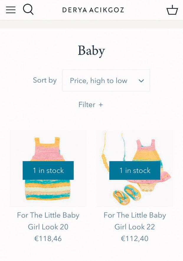 Örgü elbise ve takım hırkanın fiyatı 118.46 euro (1.188 TL), erkek hırka ve pantolon örgü takım 99.85 euro (1.003 TL), bebek hırka 79.74 euro (800 TL)…