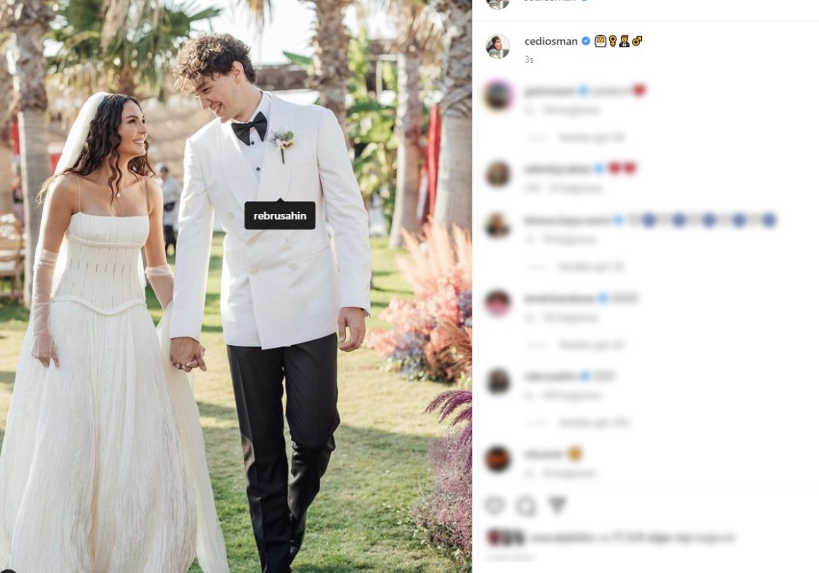 Şimdilerde mutlu bir evlilik sürdüren çiftten Cedi Osman, düğünde çekilen bir karelerini 1.4 milyon takipçisi bulunan Instagram sayfasından eşi Ebru Şahin'i kalbine etiketleyerek paylaştı.