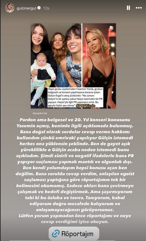 Hepsi Grubu'nun üyeleri yine birbirine girdi. 2009'da Gülçin Ergül'ün gruptan ayrılmasıyla başlayan çalkantılı dönem, grup üyeleri arasındaki anlaşmazlıkların derinleşmesine neden oldu. Grup, başlangıçta üç kişi olarak devam etse de, sonrasında Yasemin Yürük, Cemre Kemer ve Eren Bakıcı'dan oluşan yeni bir formasyonla yoluna devam etmeye çalıştı. Ancak bu deneme de uzun ömürlü olmadı ve grup tekrar dağıldı. Şimdilerde 20. yıl konseri düzenleyecekleri iddia edilen grup üyeleri adeta birbirine girdi. Yasemin Yürük, Gülçin Ergül'e ateş püskürdü.