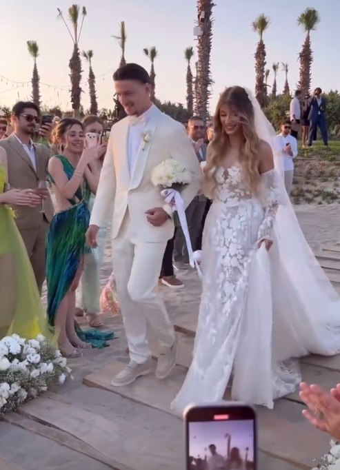 Trabzonspor'un genç yıldızı Enis Destan, kendisinden 10 yaş büyük pilates eğitmeni Arzum Kuruçalı ile dünyaevine girdi. Enis Destan'ın annesi, gelinini hem yaşı hem de tarzı konusunda sert eleştirmişti. Çift, tüm engellemelere rağmen, mutluluğa "evet" dedi. İşte düğün görüntüleri...