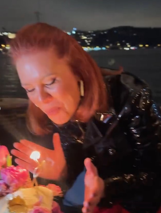 Boğaz'da keyifli bir gece geçiren Gülşah Alkoçlar, alkışlar ve ıslıklar eşliğinde doğum günü pastasını kesti.
