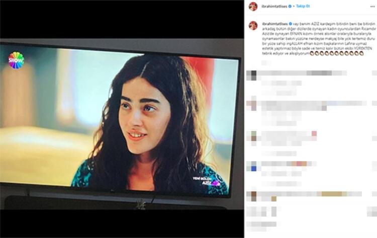 "Vay benim Aziz kardeşim, bitirdin beni be bitirdin arkadaş. Bütün diğer dizilerde oynayan kadın oyunculardan ricamdır, Aziz'de oynayan Efnan kızımı örnek alsınlar. Oralarıyla buralarıyla oynamasınlar. Bakın yüzüne nerdeyse makyaj bile yok..."