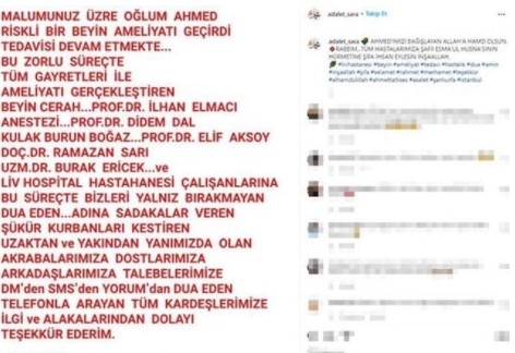 İbrahim Tatlıses'in ilk eşi Adalet Sara'dan dünyaya gelen oğlu Ahmet Tatlıses beyin tümörü ameliyatı olmuştu.
