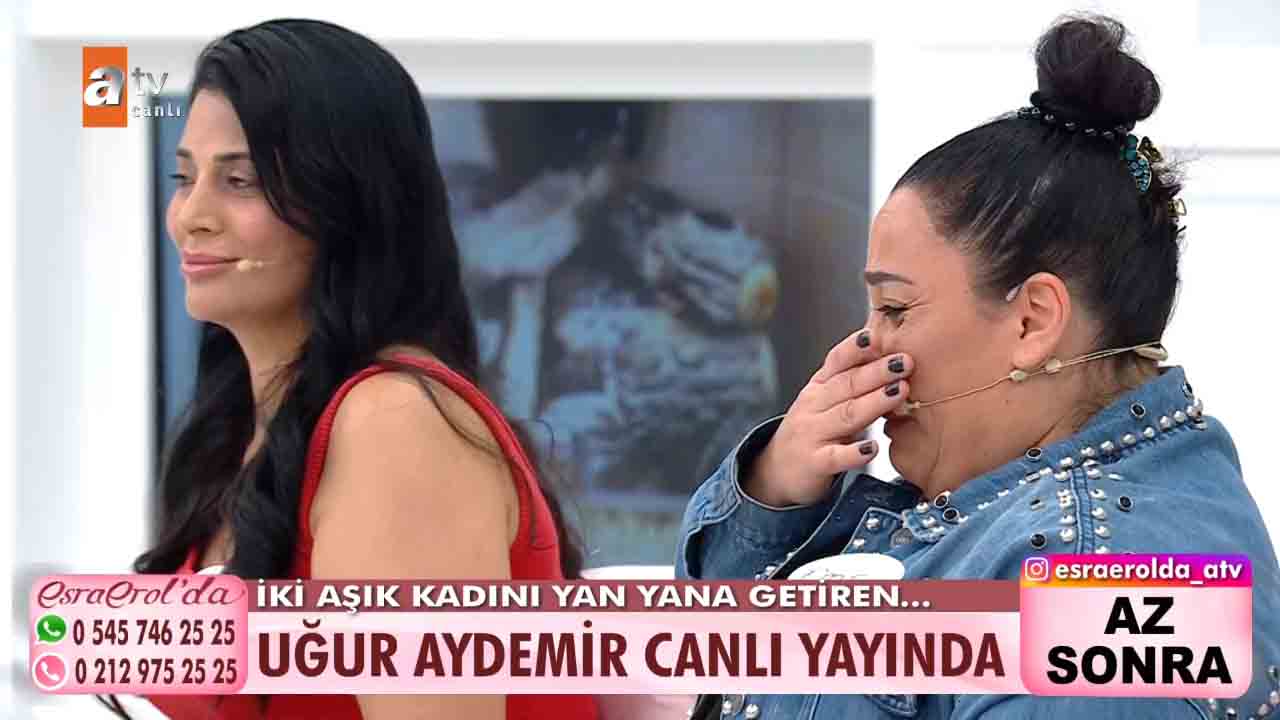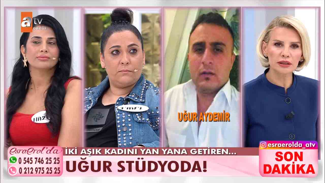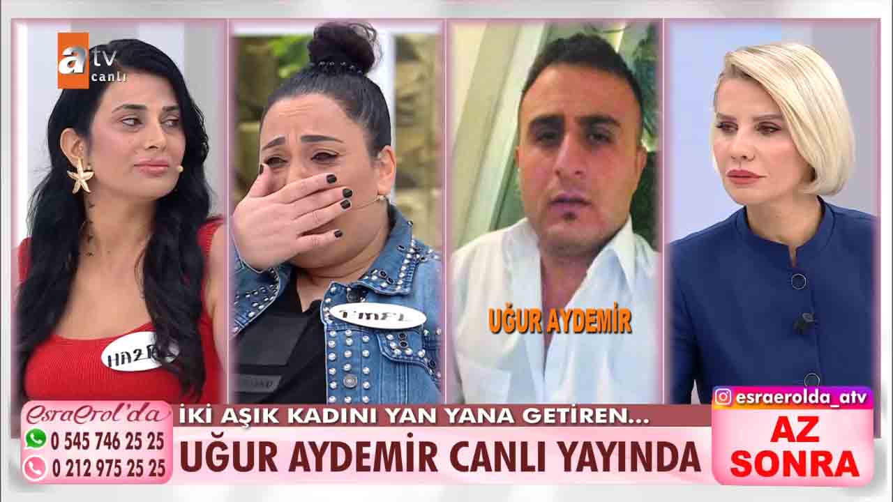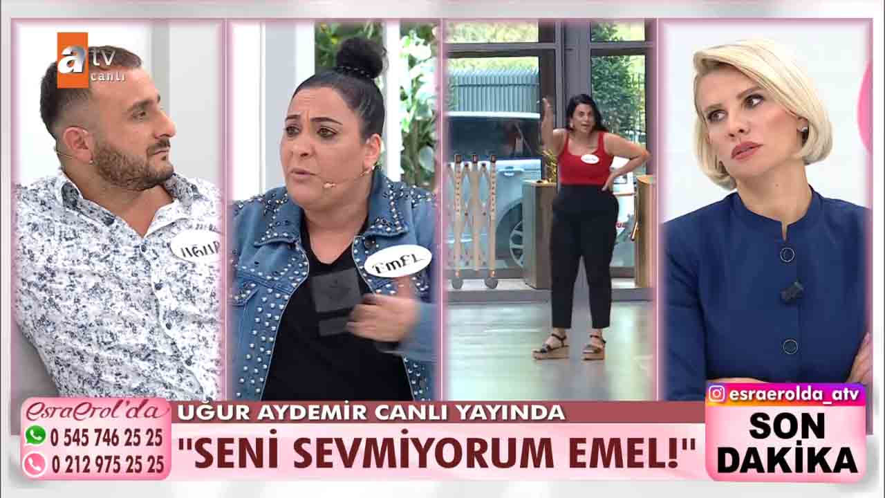 ATV'nin reyting rekortmeni programlarından biri olan Esra Erol'da bu hafta izleyicilerin büyük beğenisini kazandı. Ünlü sunucu Esra Erol'un sunumuyla ekranlara gelen programda her hafta farklı ve konuklar yer alıyor. Emel Zeyrek ve Hazal Kayma aynı adam Uğur Aydemir için stüdyoya geldi. Kadınlardan biri Uğur Aydemir'den hesap sorarken diğeri İlan-ı aşk etti. Hazal Hanım, Uğur Aydemir ile sevgili olduğunu ondan bir de çocuk yaptığını, Uğur'un hem kendisine hem de evladına bakmadığını, tam o sıralarda Emel'in Uğur'un hayatına girdiğini, başta Emel ile çok kavga ettiklerini ama şimdi kadın dayanışması yapmaya karar verdiklerini anlattı. İki aşık kadını yan yana getiren Uğur stüdyoya geldi. Çıkan gerilim sonrası taraflar birbirlerinin üzerine yürüdü. Uğur Aydemir'in rahat tavırları ise dikkatlerden kaçmadı. Esra Erol ise Aydemir'e tepki gösterdi.