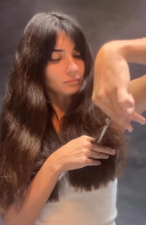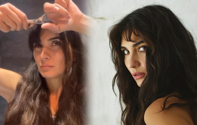 Eline makas alıp saçlarını kesmeye girişen Tuba Büyüküstün, o anları Instagram hesabından yayınlandı.