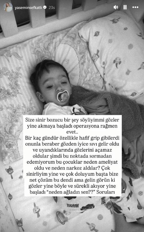 Fenomen gelin "Artık gözleri neden hep yaşlı diye sormayacaksınız" açıklamasıyla oğulları Emir ve Ayel'in gözlerinden operasyon geçirdiğini duyurmuştu.