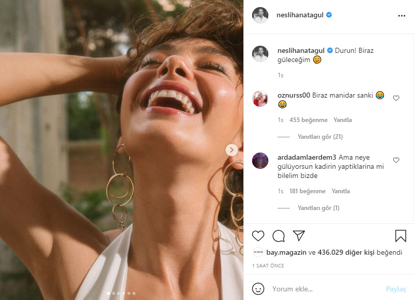 Aşkın Tarifi dizisinde başrolü paylaşan Kadir Doğulu ve Serra Arıtürk'ün samimi görüntüleri sosyal medyada olay oldu. Sosyal medyada yayınladıkları videoda samimi halleriyle dikkat çeken ikili sosyal medyada tepki toplarken "Biri evli olduğunu hatırlatsın", "Bu ne evli adam dizi dışında aşık aşık hareketler" yorumları yağdı. Görüntüler sonrası Doğulu'nun eşi Neslihan Atagül'den ilk tepki geldi.