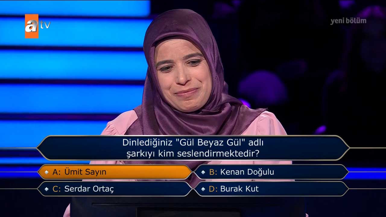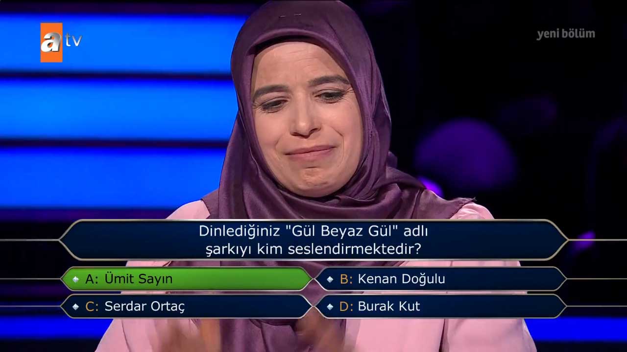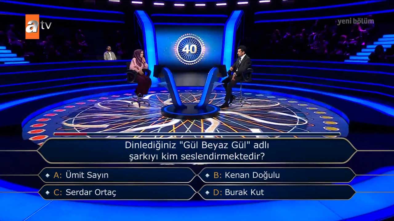 Ünlü oyuncu Kenan İmirzalıoğlu'nun sunumuyla ekranlara gelen ve ATV'nin izlenme rekorları kıran bilgi yarışması 'Kim Milyoner Olmak İster?'in 29 Mayıs 2022 Pazar günkü yayını yine çok konuşulacak sorulara imzasını attı. "Kemal Sunal bir röportajında ileride eşi olacak Gül Sunal'la ilk buluşmaları öncesinde vazgeçtiğini ve buluşmaya gitmeyeceğini söylediğinde onu kimin "hadi git ulan!" diyerek zorla gönderdiğini söylemiştir?" sorusu güne damga vurdu. Yarışmacı 50 bin TL'lik soruya bakın nasıl yanıt verdi.