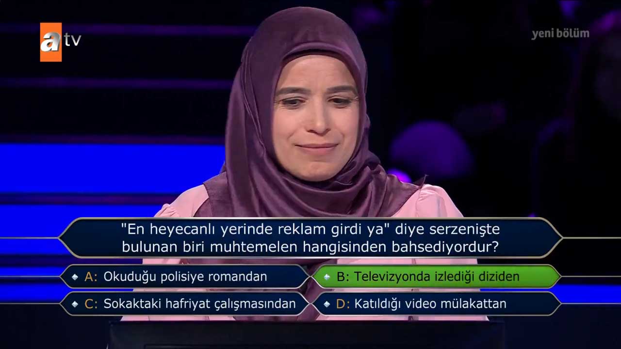Milyoner'e "Kemal Sunal bir röportajında ileride eşi olacak Gül Sunal'la ilk buluşmaları öncesinde vazgeçtiğini ve buluşmaya gitmeyeceğini söylediğinde onu kimin "hadi git ulan!" diyerek zorla gönderdiğini söylemiştir?" sorusu damga vurdu.
