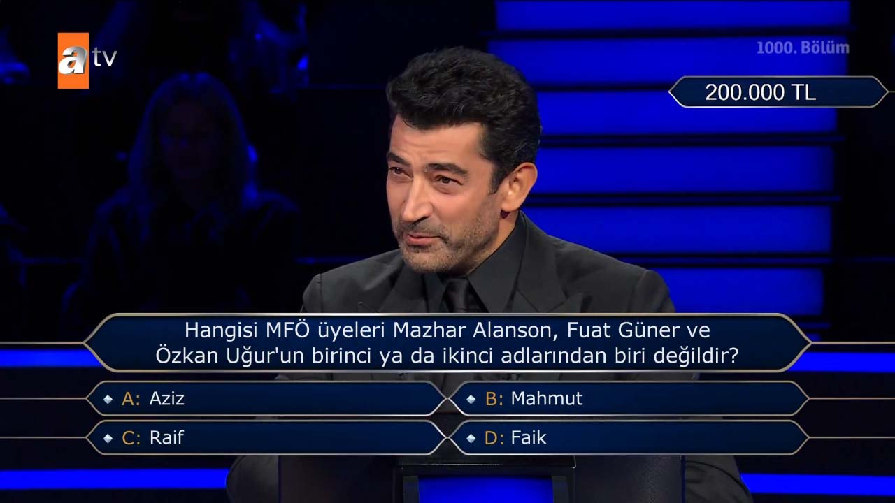 Kenan İmirzalıoğlu'nun usta sunumuyla Atv'de yayınlanan "Kim Milyoner Olmak İster?" 1000'inci programında ünlü isimler zor sorular karşısında hafızalarının sınırlarını zorladılar.
