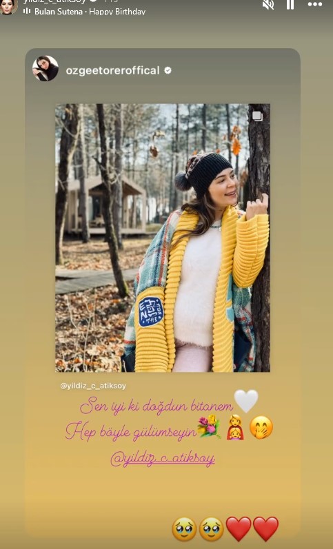 Güzel oyuncunun doğum günün kutlayanlardan biri de rol arkadaşı Özge Törer oldu. Törer, paylaşımına, "Sen iyi ki doğdun birtanem, hep böyle gümlümseyin" notunu düştü.