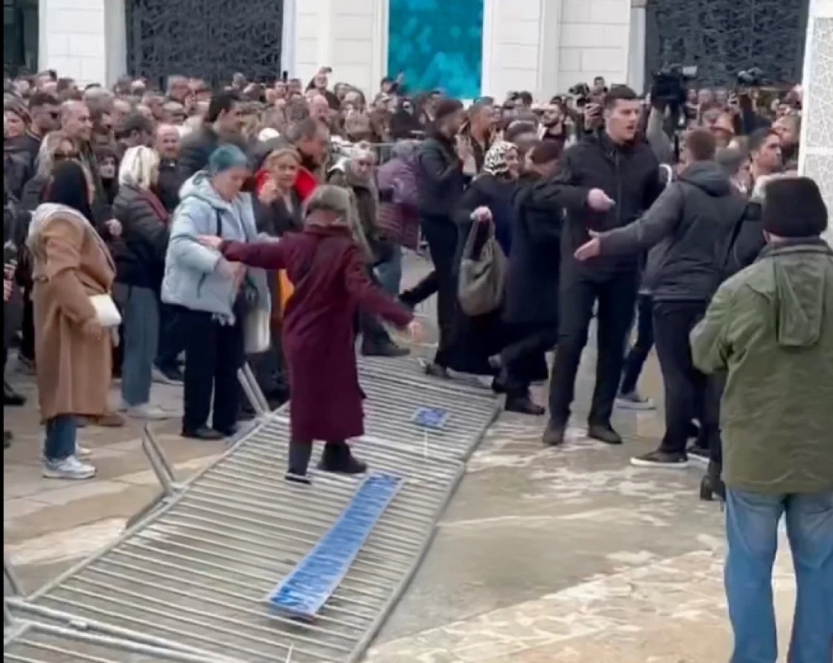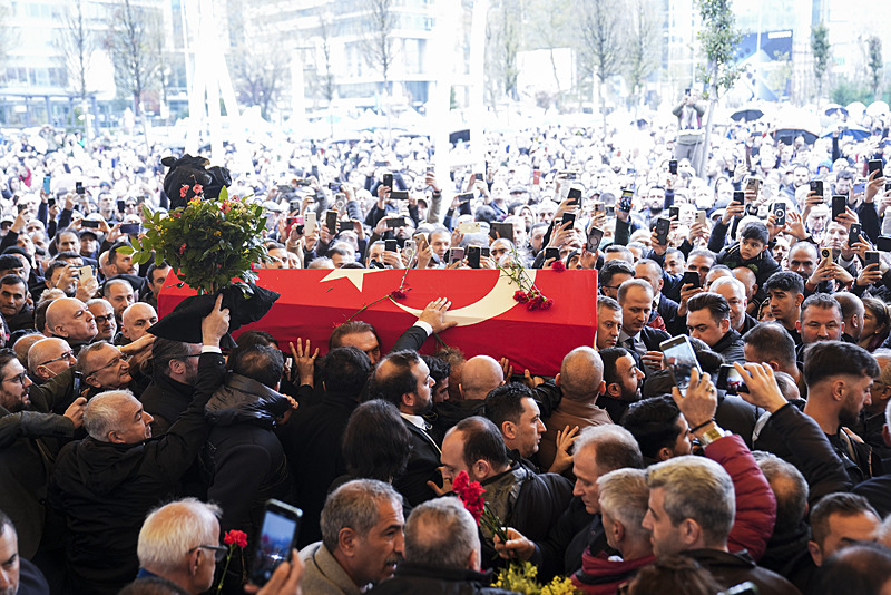 Yoğun katılımın yaşandığı törende güvenlik şeritleri yıkılırken, tabuta yaklaşmak için yarışanlar arasında da gerginlik yaşandı.