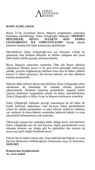 Hadise ile boşanma aşamasında olan Mehmet Dinçerler, arkadaşlarıyla birlikte Rodos'a gitti. Tatilden gelen görüntüler ise gündeme bomba gibi düştü. Ünlü iş insanı Hülya Avşar ve Kaya Çilingiroğlu'nun kızı Zehra Çilingiroğlu ile görüntülendi. İki ünlü isim arasındaki aşk iddiası magazine bomba gibi düştü. Zehra Çilingiroğlu'nun annesi Hülya Avşar aşk söylentilerine ateş püskürdü.