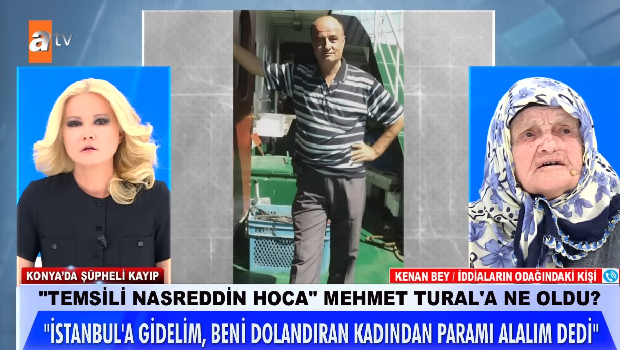 Müge Anlı'nın programında yine akıllara durgunluk veren bir olay gündeme geldi. Konya'da şüpheli bir şekilde ortadan kaybolan ve Nasreddin Hoca olarak bilinen Mehmet Tural'ın 89 yaşındaki annesi, gözyaşları içinde oğlunun bulunmasını istemişti. Kayıp adamın bıraktığı notta kaybından sorumlu tuttuğu bir kişi de vardı. İddiaların odağındaki Kenan hakkında çıkan gerçekler ise herkesi şoke etti.