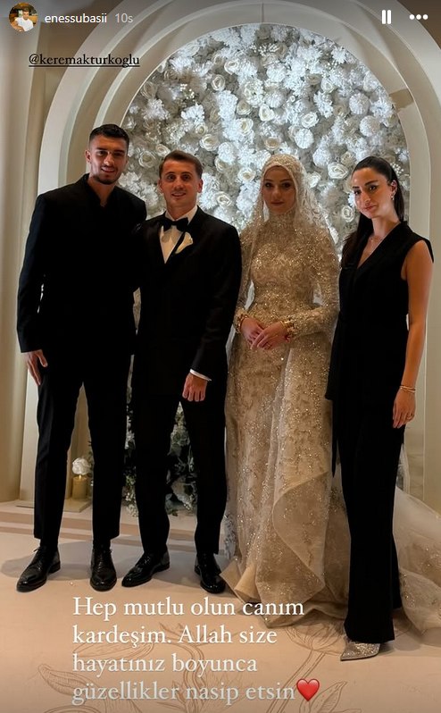 Türkiye A Milli Futbol Takımı ve Portekiz'in Benfica takımında forma giyen futbolcu Kerem Aktürkoğlu muradına erdi. Aralık ayında nişanlanan Ceren Azak ile Kerem Aktürkoğlu çifti, geçtiğimiz saatlerde dünyaevine girdi. Düğünden gelen ilk kare ise sosyal medyada gündem oldu.