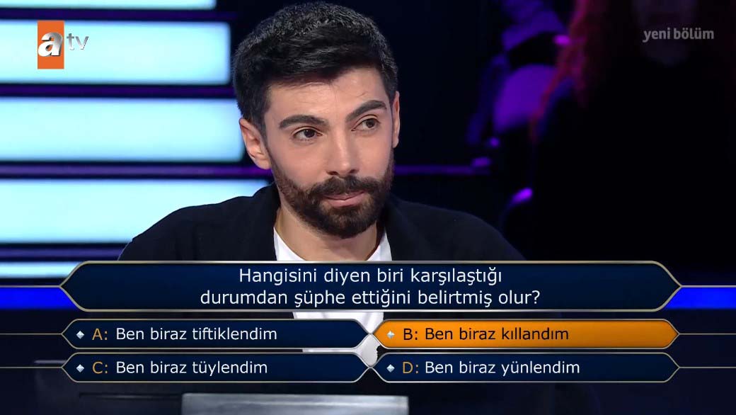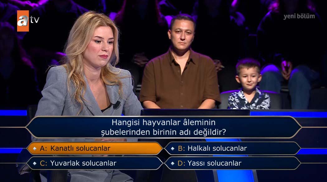 Başarılı performansı sergileyen genç yarışmacının karşısına200 bin TL değerinde "Hangisi maydanoz gillerden değildir?" sorusu çıktı.