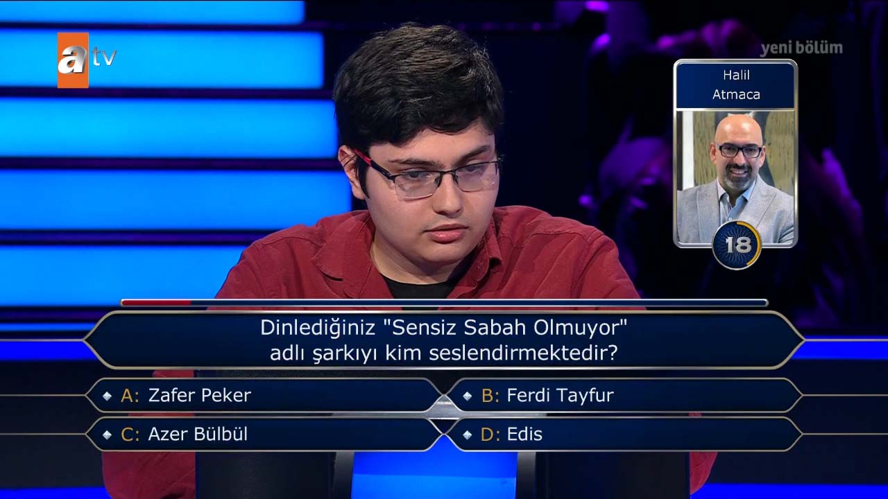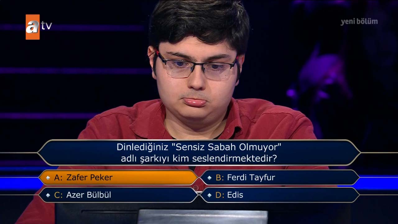 ATV'nin beğeniyle izlenen ve reytingleri altüst eden programlarından Kim Milyoner Olmak İster, her hafta olduğu gibi bu hafta da izleyicileri ekran başına kilitledi. Milyoner'de bu hafta başarılı performanslar yer alırken programda Enes Atmaca isimli genç yarışmacı 'tarih' sorusuna şoku yaşadı. Hiç beklemediği bir anda elenen yarışmacının tepkisi yaşadığı şoku anlatır nitelikteydi. İşte o anlar...