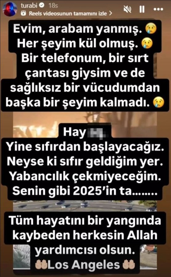 ABD'nin California eyaletinin Los Angeles kenti, orman yangınlarıyla mücadeleye devam ediyor. Yangınlar, Hollywood'un ünlü isimlerinin yaşadığı lüks bölgeleri de vurdu. Felaket, özellikle yatırım ve kullanım amacıyla bu bölgeden gayrimenkul alan Türk ünlülerinin evlerine de sıçradı. İşte Los Angeles yangınında evleri küle dönen Türk ünlüler...