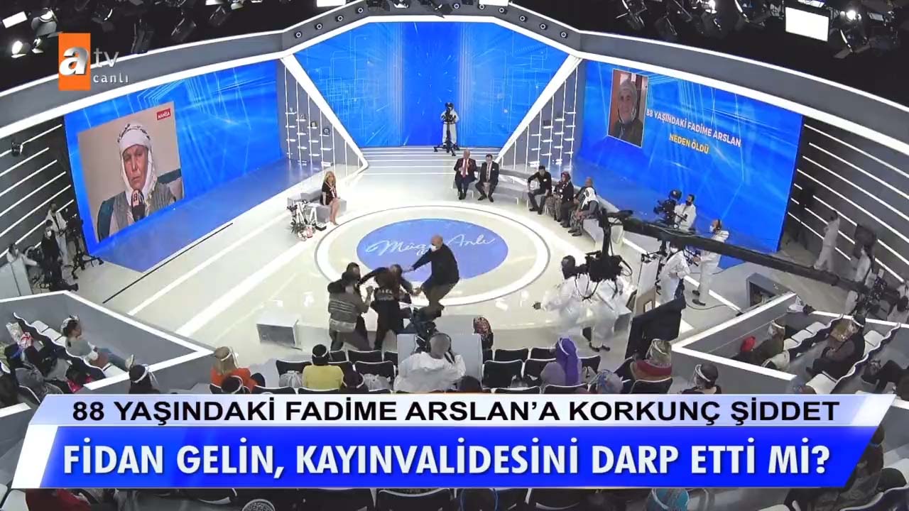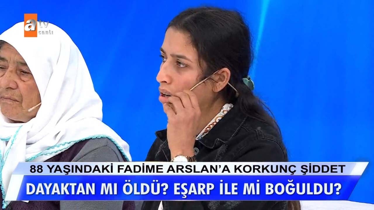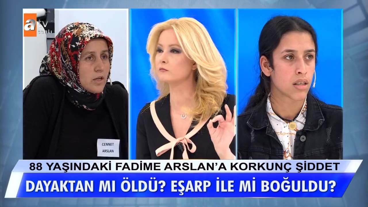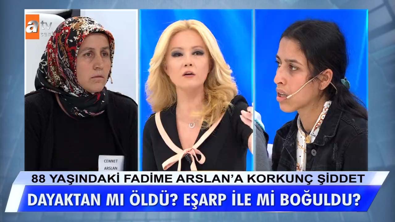 Müge Anlı ile Tatlı Sert programında işlenen Fadime Arslan cinayeti Türkiye'nin gündeminden düşmüyor. 88 yaşında hayatını kaybeden Fadime Arslan'a gelini tarafından uygulanan şiddet izleyenleri dehşete düşürmüştü. Olayın detaylarına inen Müge Anlı, küçük gelin Fidan Arslan'ın cenaze günü hayatını kaybeden Fadime Arslan'ın kıyafetlerini giyip dans ettiği videoyu ekranlara getirmişti. Bu videonun ardından okları üzerine çeken küçük gelin Fidan Arslan, Müge Anlı canlı yayınında eşi Mehmet Arslan'a uçan tekme attı! İşte Müge Anlı canlı yayınında bugün yaşanan son dakika gelişmeleri...