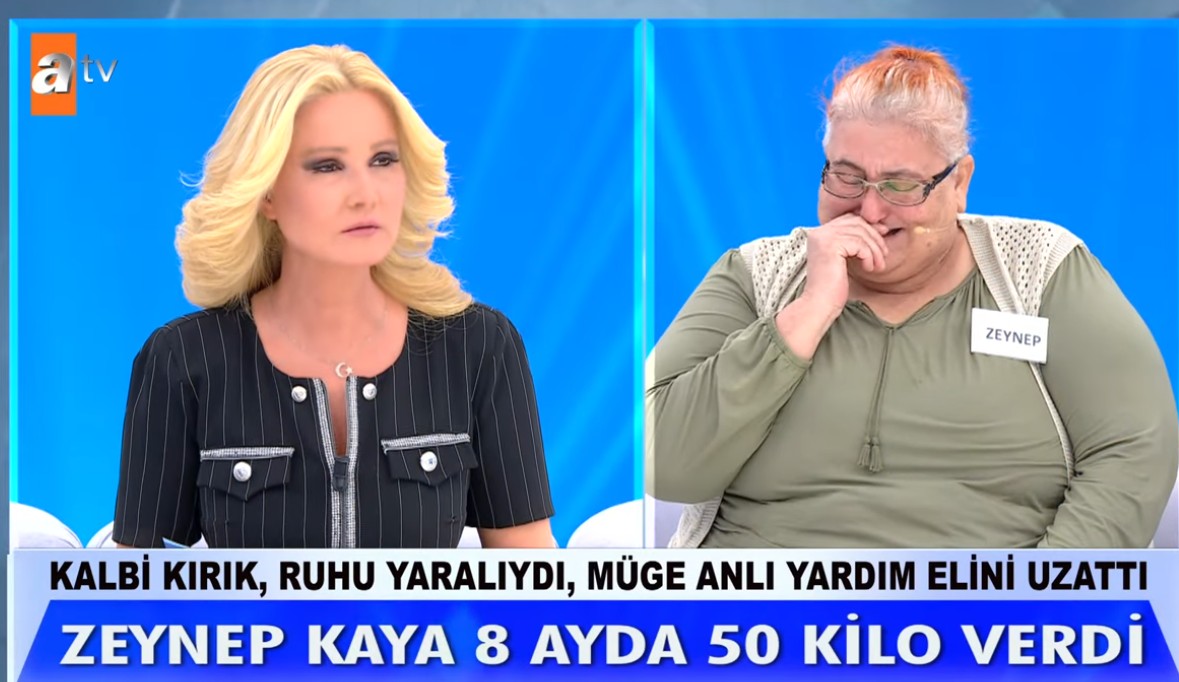 ATV ekranlarının sevilen programı Müge Anlı ile Tatlı Sert, 17. sezon finalinde duygusal anlara sahne oldu. Sezon başında eşinin ihaneti sonrası yaşadığı depresyon nedeniyle tam 3 yıl boyunca evden çıkmayan ve 150 kilo ağırlığındaki Zeynep Kaya, yaşadığı değişimle ağızları açık bıraktı.