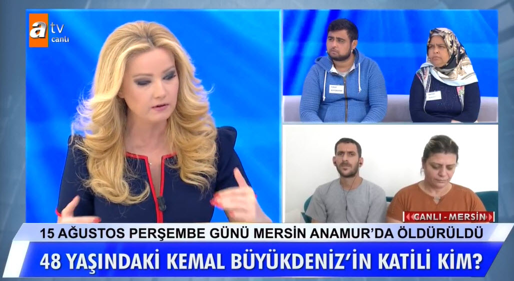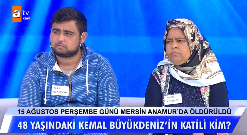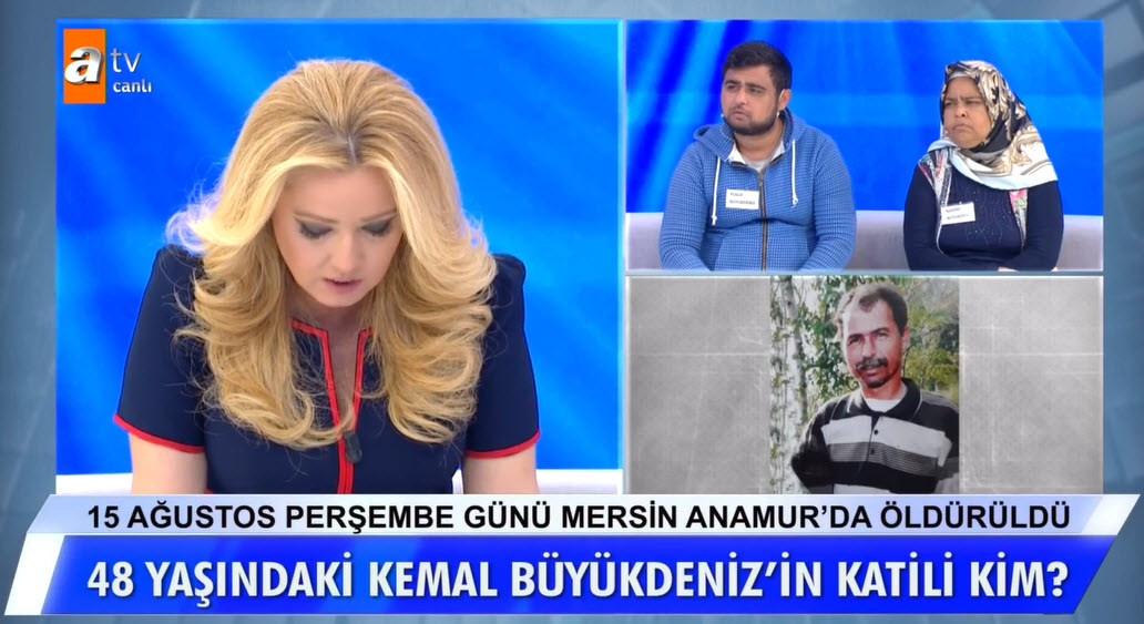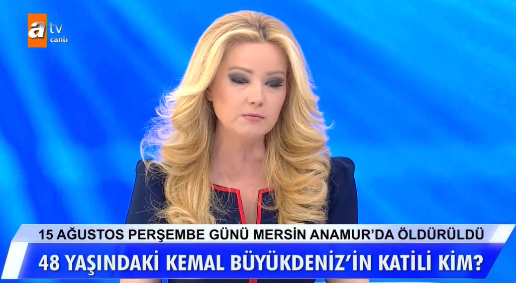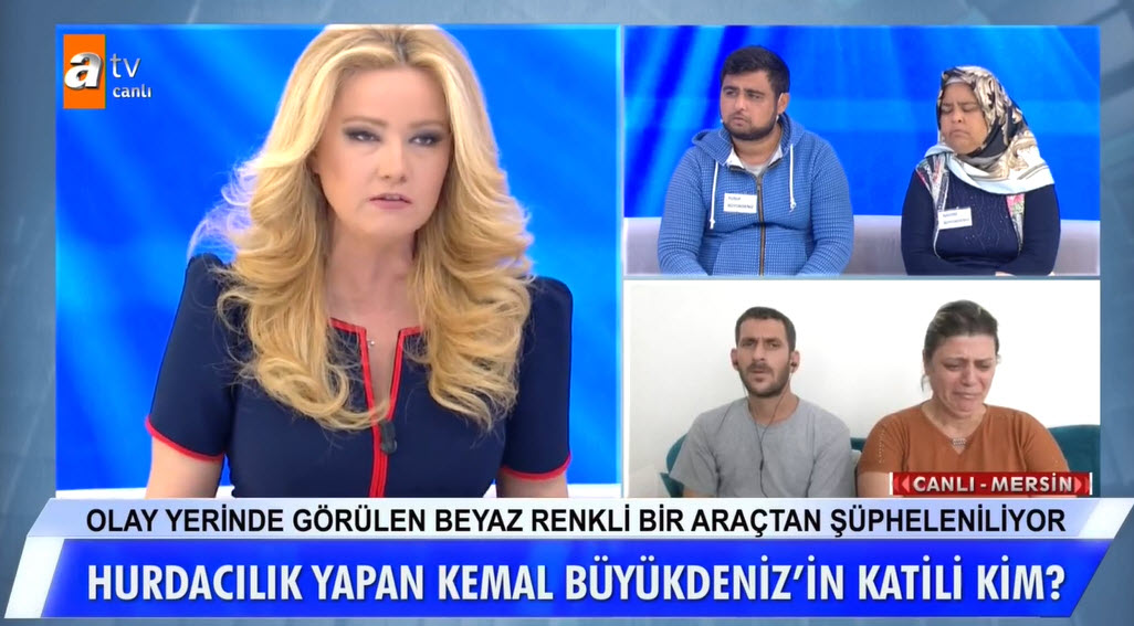 Müge Anlı canlı yayınında 15 Ağustos günü silahla öldürülen hurdacı Kemal Büyükdeniz'in katili arandı. ATV ekranlarındaki Müge Anlı canlı yayınında Yusuf Büyükdeniz'in babasının cenazesinde söyledikleri konuşuldu. Müge Anlı canlı yayınında, 75 gün önce Mersin'de öldürülen hurdaci Kemal Büyükdeniz'in oğlu Yusuf Büyükdeniz'in "katili söylersem beni öldürürler" dediği konuşuldu.