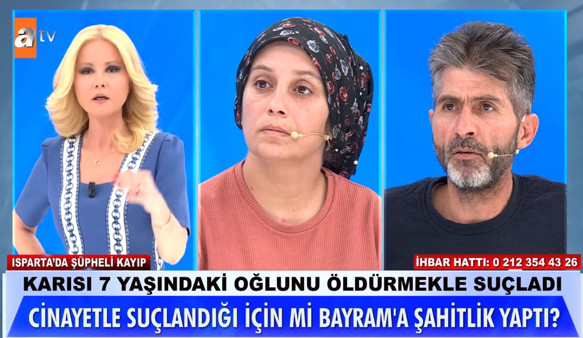 Bayram'ın kız kardeşi Fatma'nın çevresindeki insanlara "Bayram'ı temize çıkaralım. Yayına bağlanın" şeklindeki açıklamaları ise dikkat çekti. Bayram, Mehmet'in kaybolduğu gün Fatma'nın eşi Hüseyin ile birlikte olduğunu dile getirmişti. Müge Anlı . Hüseyin'in yıllar önce Fatma'nın eski eşinden olan 7 yaşındaki çocuğunu boğarak öldürmekle suçlandığını açıkladı.