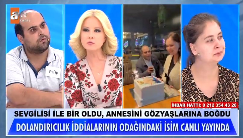 60 yaşındaki acılı anne, canlı yayına katılarak 38 yaşındaki kızı Tuğba Oğuzalp'in sevgilisi Eyüp Altındağ ile birlikte hem kendisini hem de yeğenini dolandırdığını gözyaşları içinde anlattı.