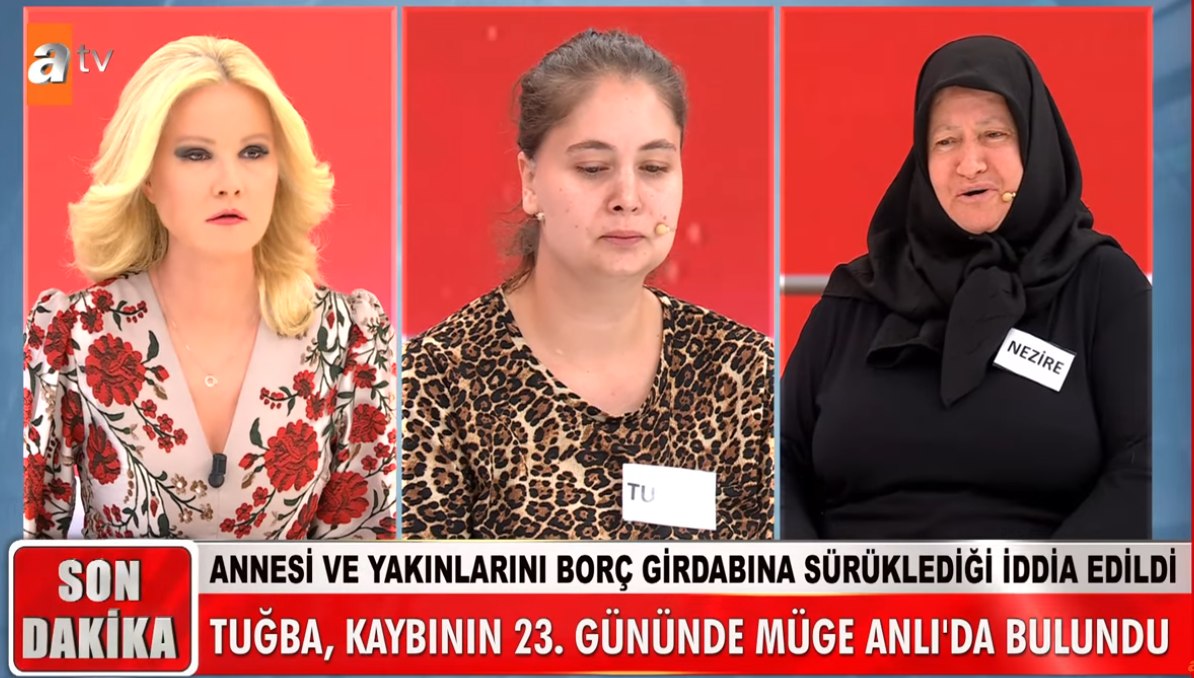 Müge Anlı ile Tatlı Sert programında yine akıllara durgunluk veren bir olay yaşandı. 60 yaşındaki acılı anne, "Sevgilisiyle birlikte beni dolandıran kızımı arıyorum" diyerek gözyaşları içinde yardım istemişti. 38 yaşındaki kızı Tuğba Oğuzalp, kaybının 23. gününde bulundu. Programda ortaya çıkan gerçekler ise izleyenleri şoke etti. Yayın sırasında gelen ihbarlar üzerine, Tuğba ve sevgilisi ifadeleri alınmak üzere emniyete götürüldü.