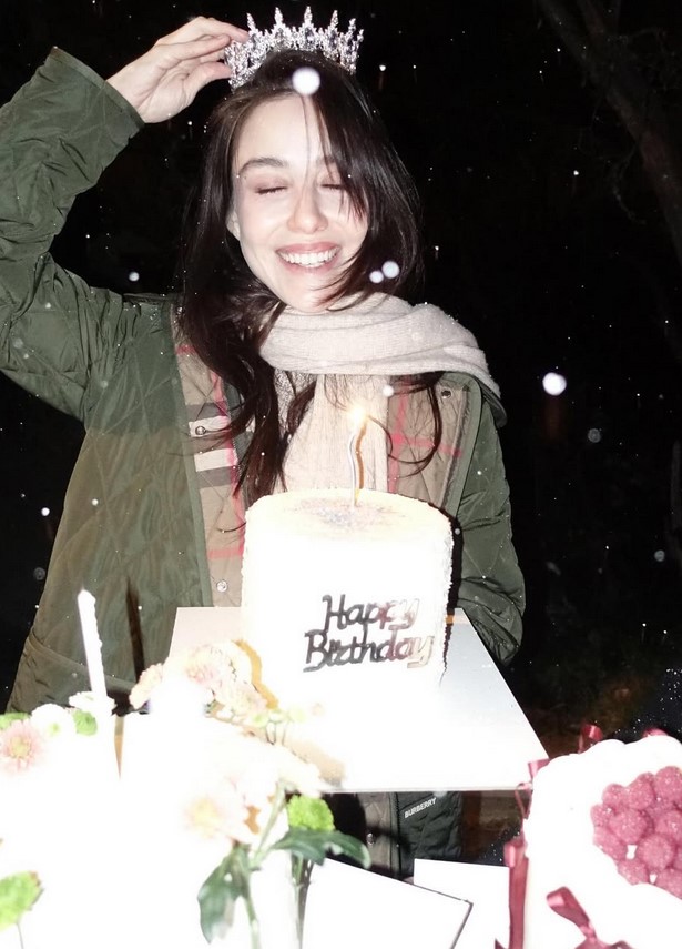 Son olarak, 38 yaşına giren güzel oyuncuya eşi Serkan Çayoğlu, Gürel'in oynadığı dizinin setine giderek sürpriz yaptı.