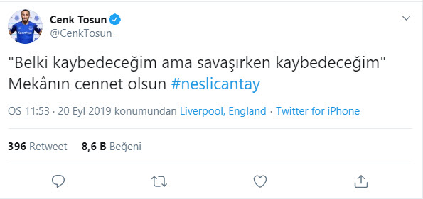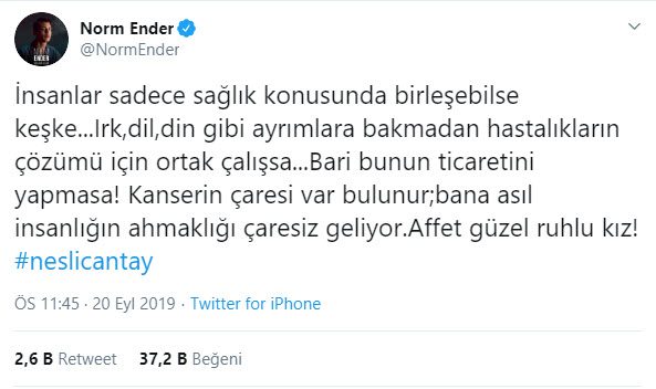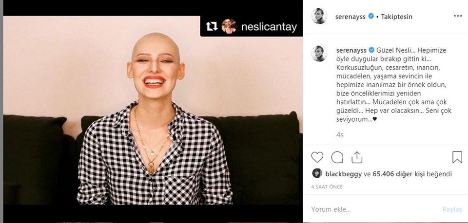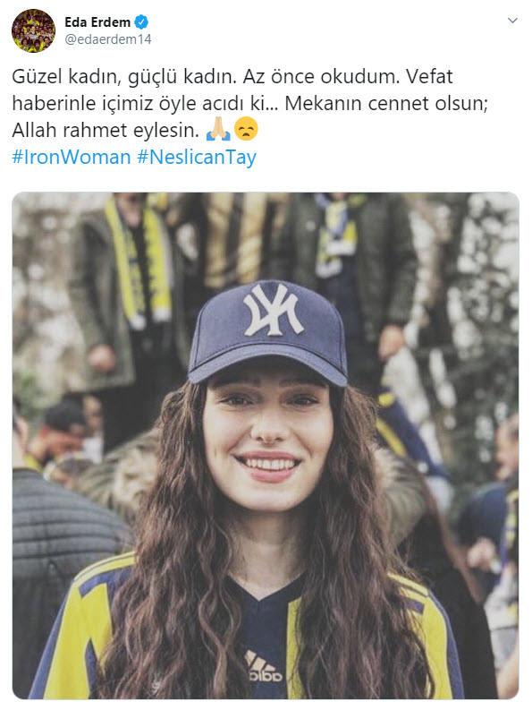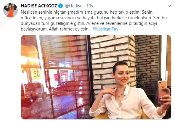 Kansere karşı verdiği mücadele ile milyonların sevgisini kazanan Neslican Tay hayatını kaybetti. Ölüm haberiyle sevenlerini yasa boğan Neslican Tay hakkında ünlü isimler de duygularını sosyal medya hesabından paylaştı. İşte ünlü isimlerden Neslican Tay paylaşımı…