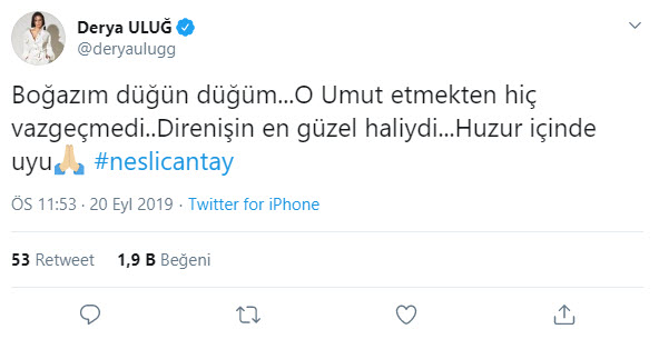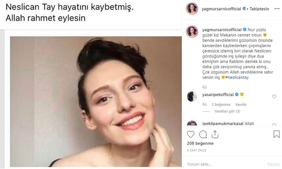 Neslican Tay hayatını kaybetti! Ünlü isimlerden Neslican Tay paylaşımları