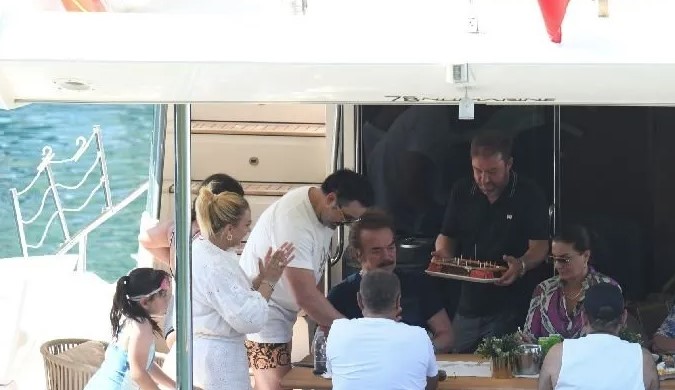 Cennet Koyu'nda demirli teknedeki kutlamada neşeli anlar yaşandı. Akşam saatlerinde ise Gencebay dostlarıyla yaş günü yemeği yedi.