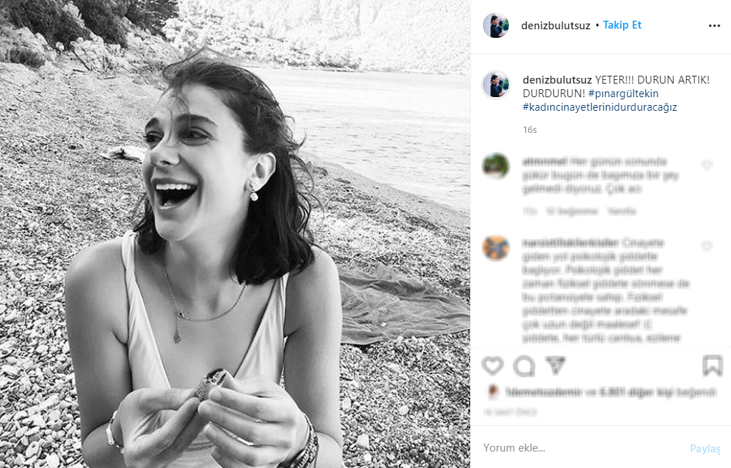 Bulutsuz, Instagram hesabından Gültekin'in fotoğrafını paylaşarak, "Yeter! Durun artık! Durdurun!" ifadelerini kullandı.