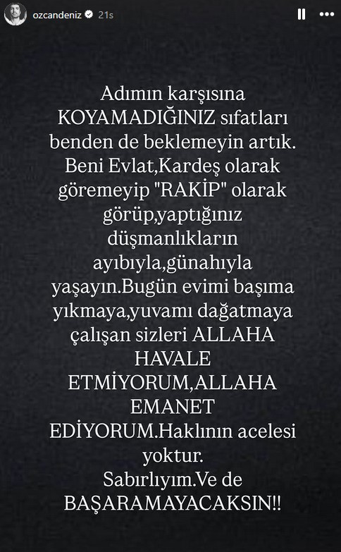 Bir süredir ağabeyi Ercan Deniz ile arası bozuk olan Özcan Deniz, son paylaşımlarıyla çok konuşulmuştu. Ünlü şarkıcı artık tek ailesinin oğlu Kuzey ve eşi Samar Dadgar olduğunu söylemişti.