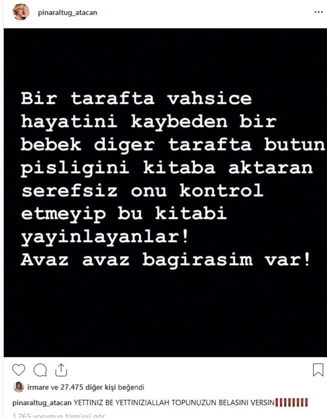 Ülke bu acı habere kilitlenmişken 'pedofili' içeren ifadelerin bulunduğu Zümrüt Apartmanı adlı kitabın varlığı gün yüzüne çıktı ve yaşanan öfke adeta ikiye katlandı. Ünlü isimler sosyal medya hesaplarından ardı ardına yaşanan bu gelişmeleri eleştirirken belki de en sert tepkilerden biri oyuncu Pınar Altuğ Atacan'dan geldi.