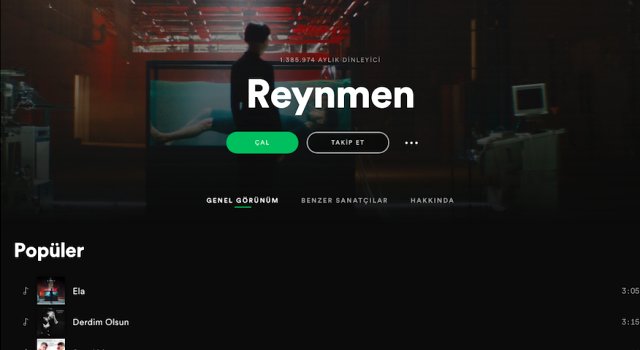 Geçtiğimiz günlerde ikinci şarkısı Ela ile Youtube'da izlenme rekoru kıran Reynmen yeni bir rekor daha kırdı. Şarkısı Spotify'da yayınlanan Reynmen, şarkının yayınlandığı gün ilk sıraya yerleşti ve tüm zamanların Türkiye günlük dinlenme rekorunu kırdı.
