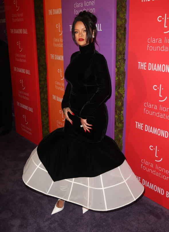 Rihanna, büyükanne ve büyükbabası onuruna kurduğu Clara Lionel Derneği yararına her yıl düzenlediği Diamond Ball'a bu yıl da ev sahipliği yaptı. Davetliler gece siyah elbisesiyle katılan 31 yaşındaki Rihanna'dan gözünü alamazken şarkıcının göbeği dikkatleri çekti. Aile büyükleri anısına düzenlenen gecede ünlü şarkıcının görüntüsü akıllara "Hamileliğini bu şekilde mi duyuruyor" sorusunu getirdi.