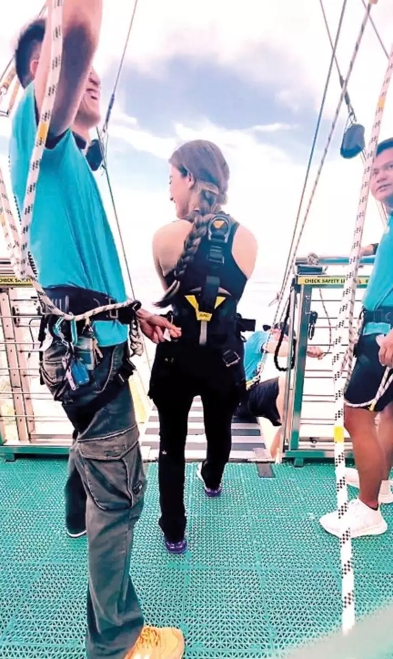 O anın görüntülerini de sosyal medyada "Dünyanın en yüksek bungy platformundan yapılacaklar listeme bir tik daha. Guinness Dünya Rekoru Bungy Jump Platformu, 233 metre." notuyla paylaştı.