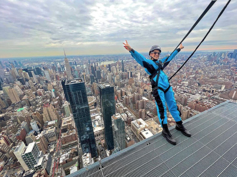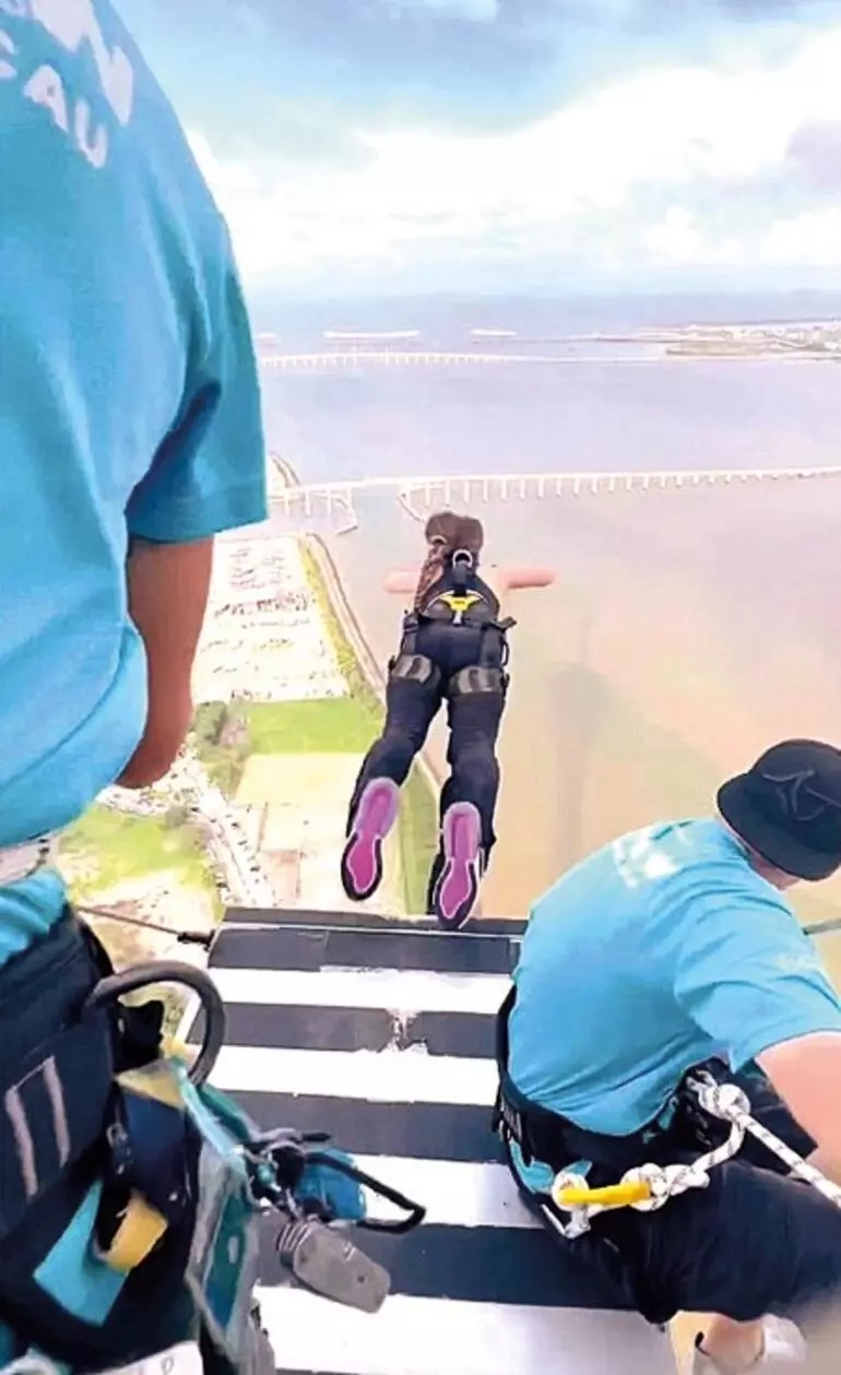 Uçağın yanı sıra motosiklet de kullanan, birkaç ay önce New York'ta 388 metrelik gökdelene tırmanan, ayrıca Rusya'da 207 metre yükseklikten Bungee Jumping yapan üç çocuk annesi genç kadın, bu kez dünyanın en yüksek bungee jumping platformundan atladı.