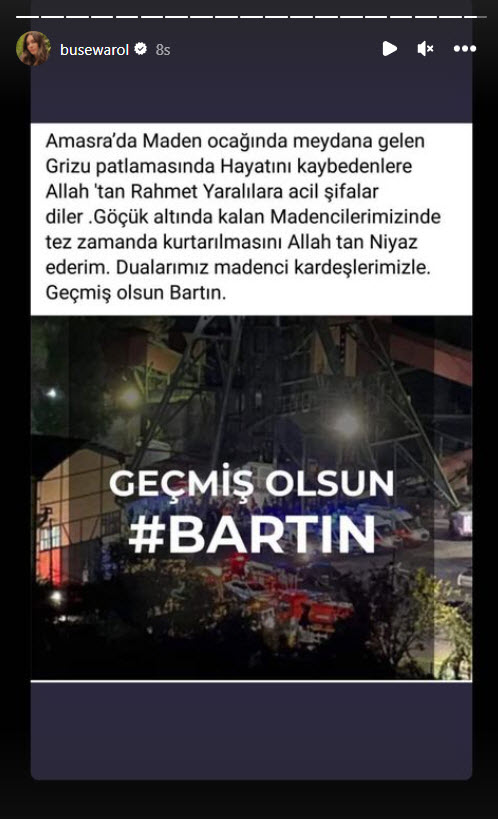Bartın'ın Amasra ilçesinde saat 18.15 sıralarında maden ocağında patlama meydana geldi. 41 maden işçisinin hayatını kaybettiği faciada 11 madenci yaralı olarak hastaneye kaldırıldı. Türkiye'yi yasa boğan olay sanat dünyasını da tek yürek yaptı. Ünlü isimler sosyal medyadan paylaşımlar yaptı.