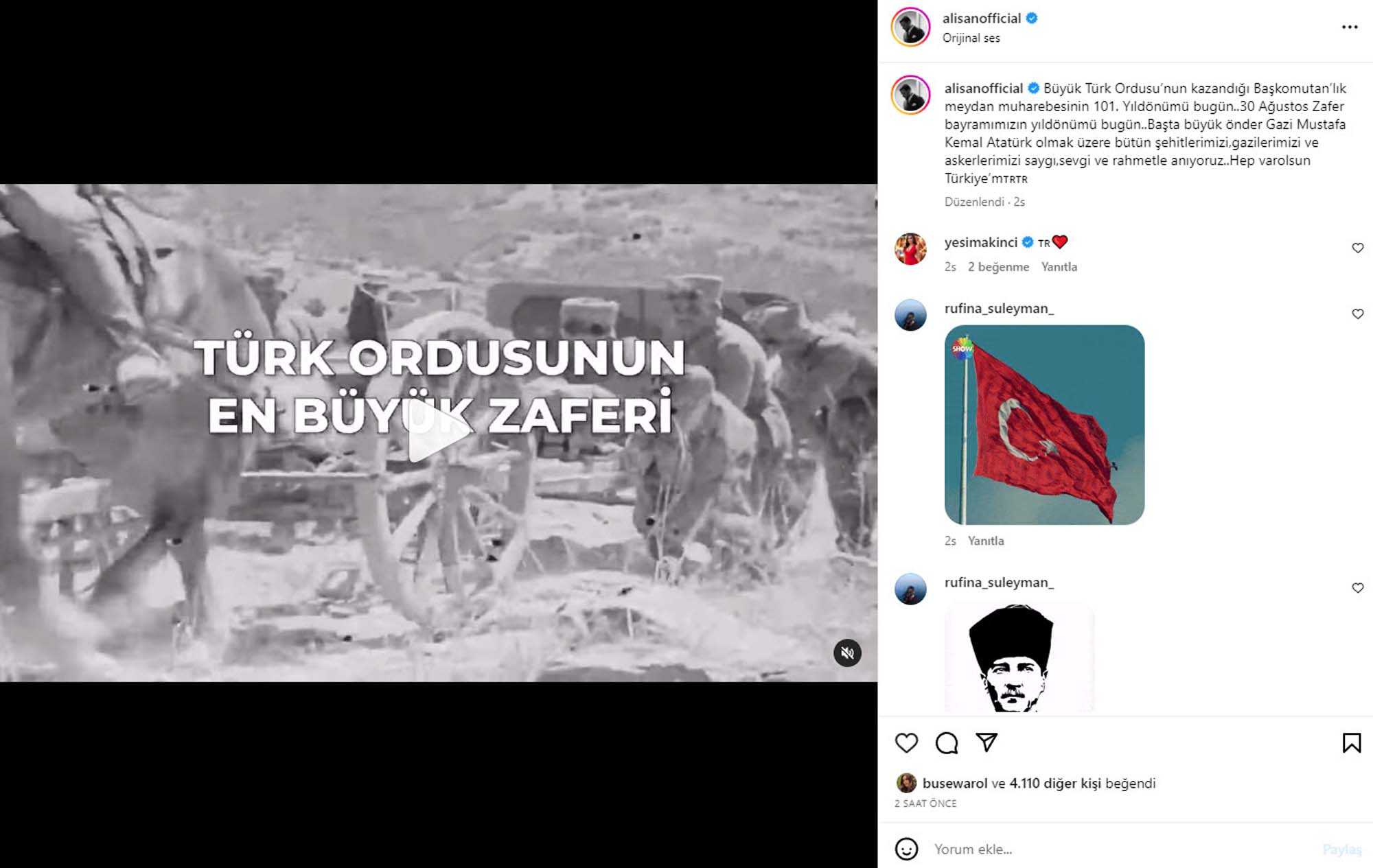Sanat dünyasının 30 Ağustos Zafer Bayramı coşkusu! Paylaşımlar peş peşe geldi! “Hep var olsun Türkiye’m”
