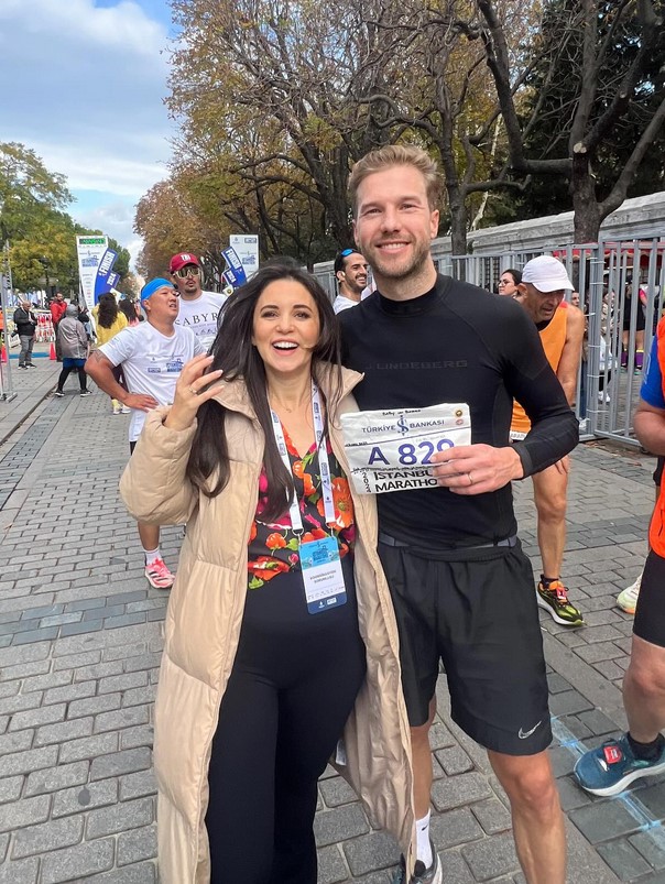 46. İstanbul Maratonu'na katılan eşi Mike Schrama'yı destekleyen Karsu, bebeğin cinsiyetini de açıkladı.