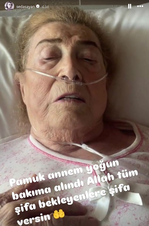 Ünlü şarkıcı, sosyal medyadaki paylaşımına "Pamuk annem yoğun bakıma alındı. Allah tüm şifa bekleyenlere şifa versin.'' yazdı.